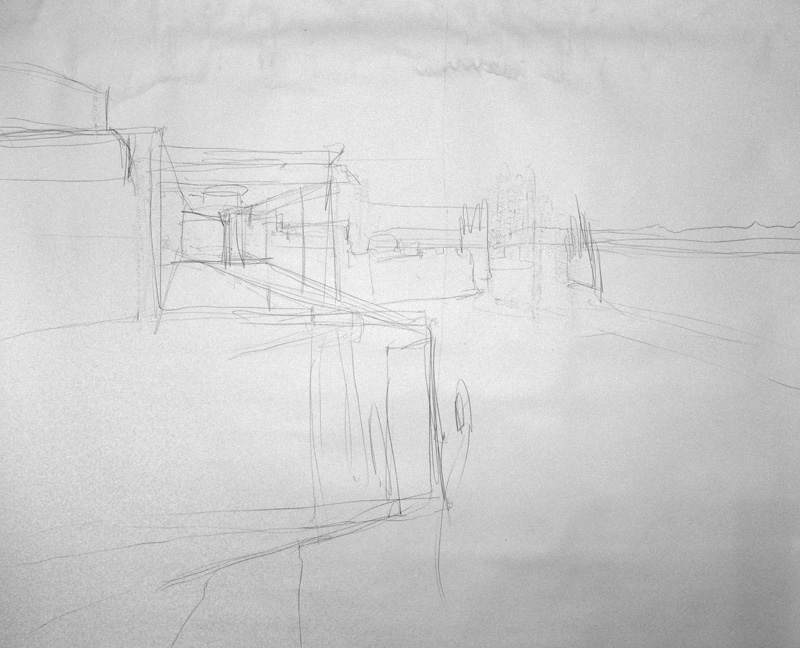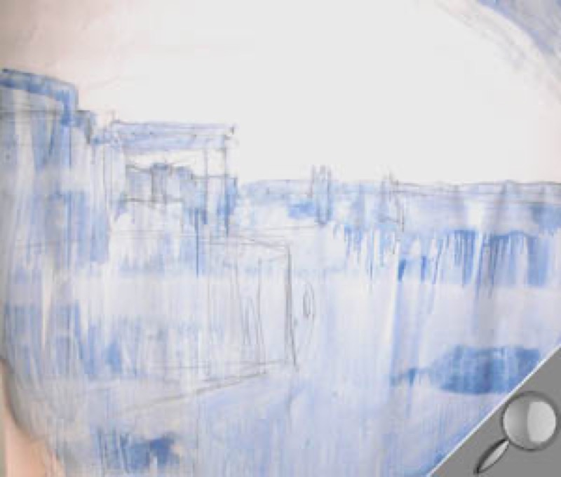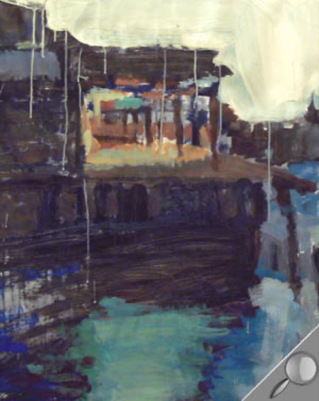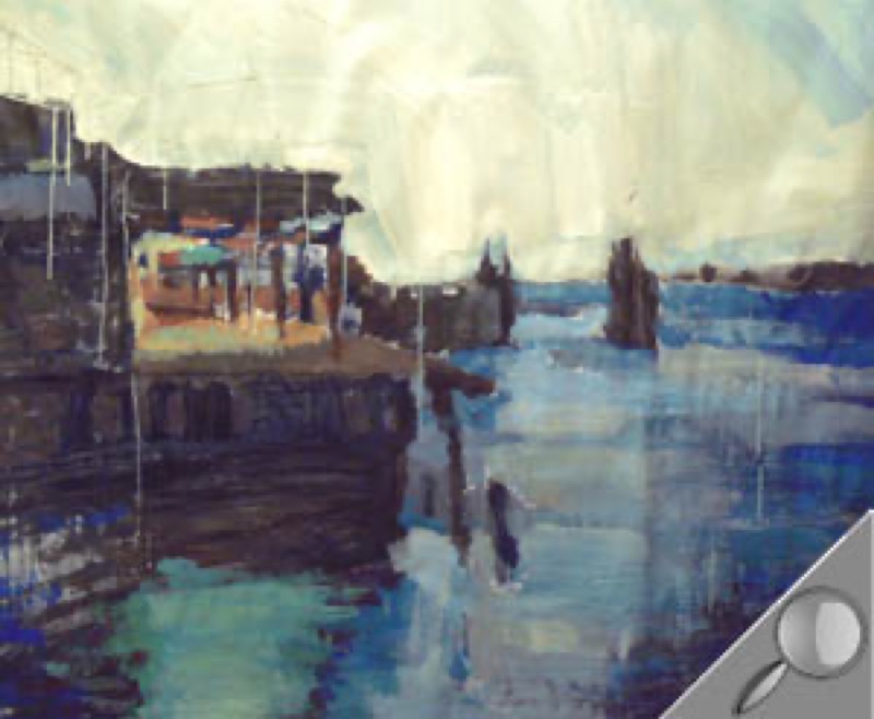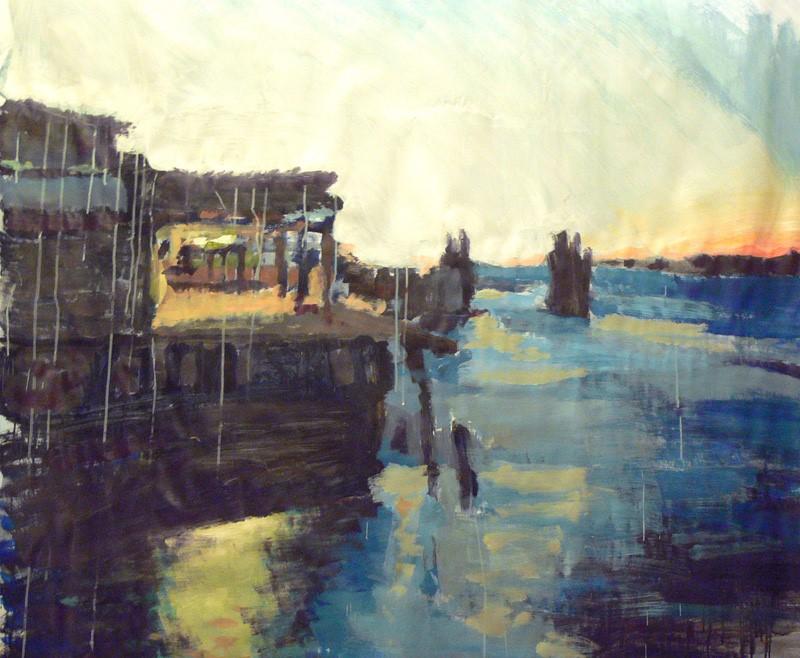 Una temática de ambiente, como el alba portuaria, tratada en gran formato, te ofrece un terreno ideal para domesticar y jugar con las posibilidades cromáticas de la pintura acrílica. Particularmente la acrílica muy diluida, aplicada con cepillo y en frotis. Un consejo: efectúa un estudio preliminar en un formato pequeño, así te anticiparás con mayor facilidad a la situación de los colores.