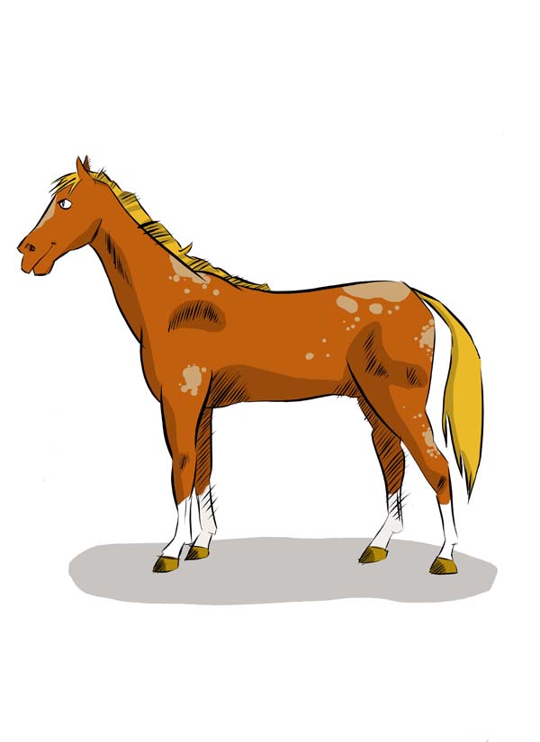 Este primer paso es muy importante porque el caballo tiene una silueta característica compleja. Asegúrate de que las proporciones son correctas: ¡corres el riesgo de dibujar un burro! Usa un lápiz, por los trazos delgados y ligeros.