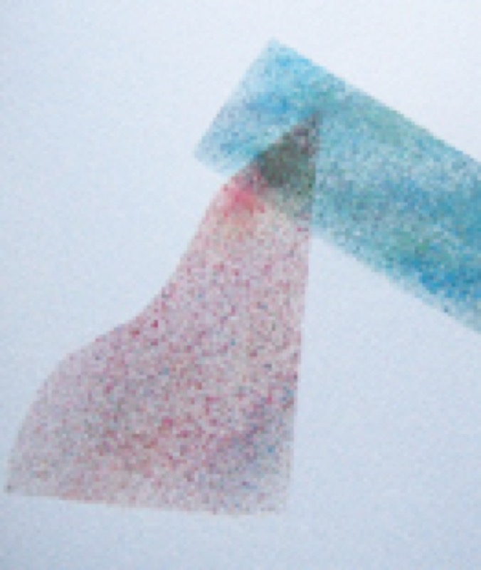 La técnica consiste en pulverizar la pintura en seco sobre el papel utilizando un cepillo de dientes o un pincel.