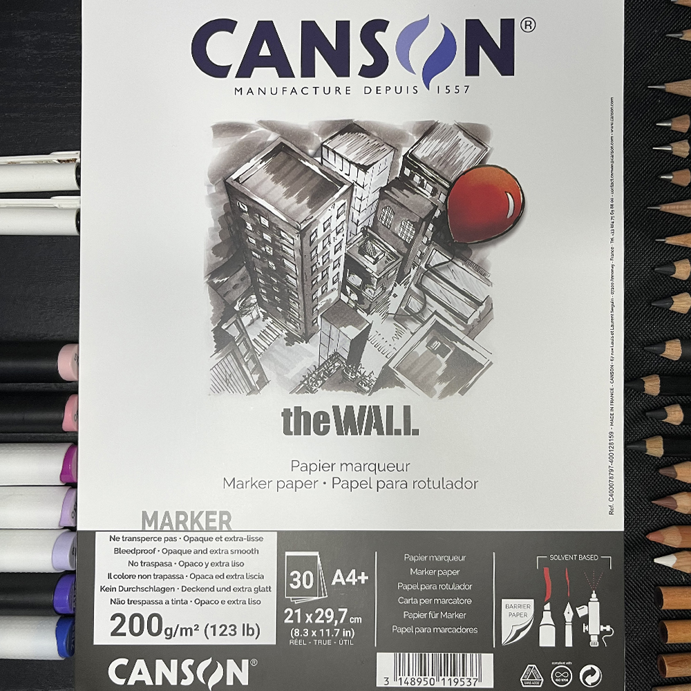 Puedes trabajar con el bloc Canson® The Wall utilizando un lápiz seco para esbozar ligeramente la composición. Sin presionar, coloca las formas simplificadas, buscando el equilibrio y el espacio que ocupará el dibujo en el papel.