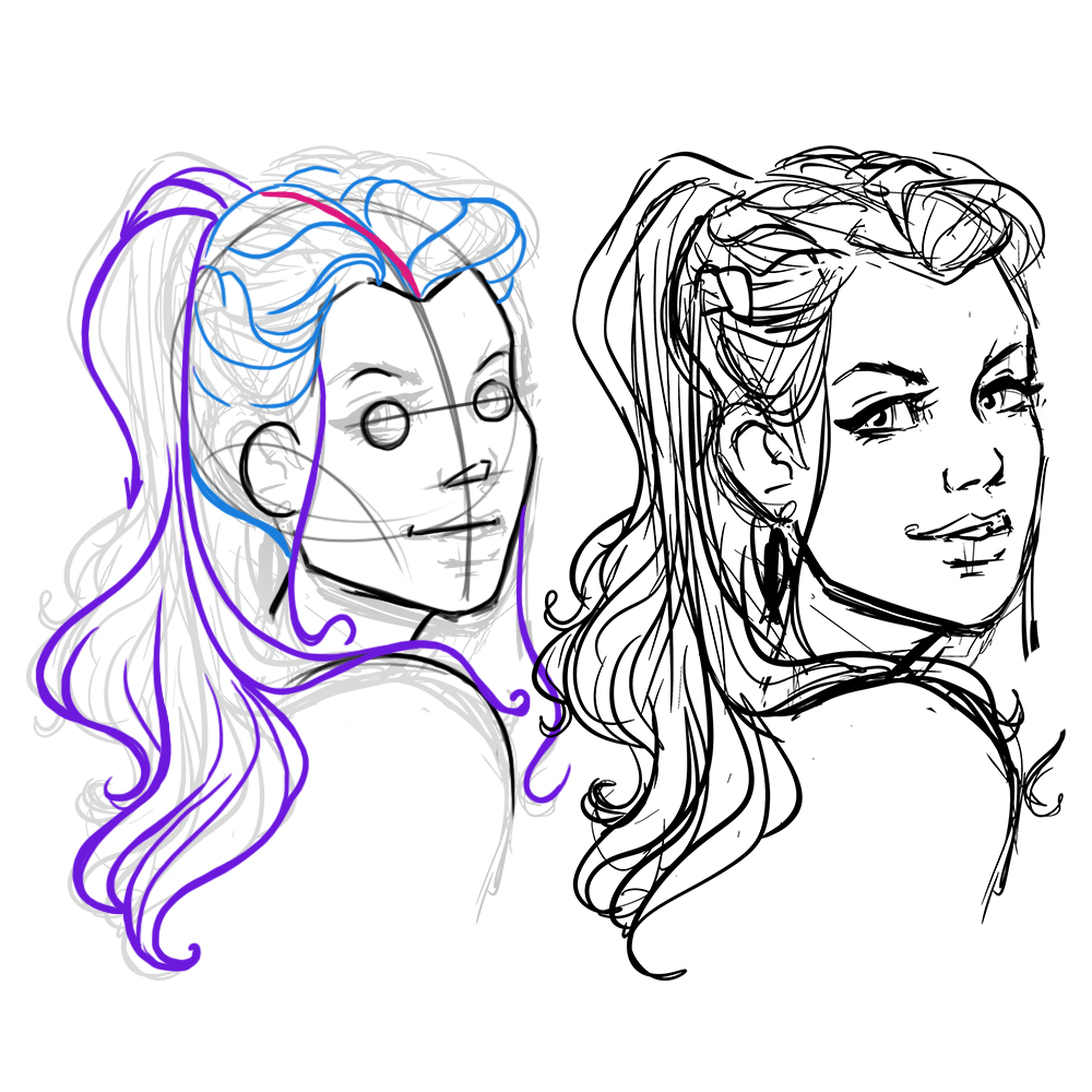 Consejo: no es necesario dibujar pelo a pelo. Pueden agruparse por filamentos. Los volúmenes serán entonces más visibles.