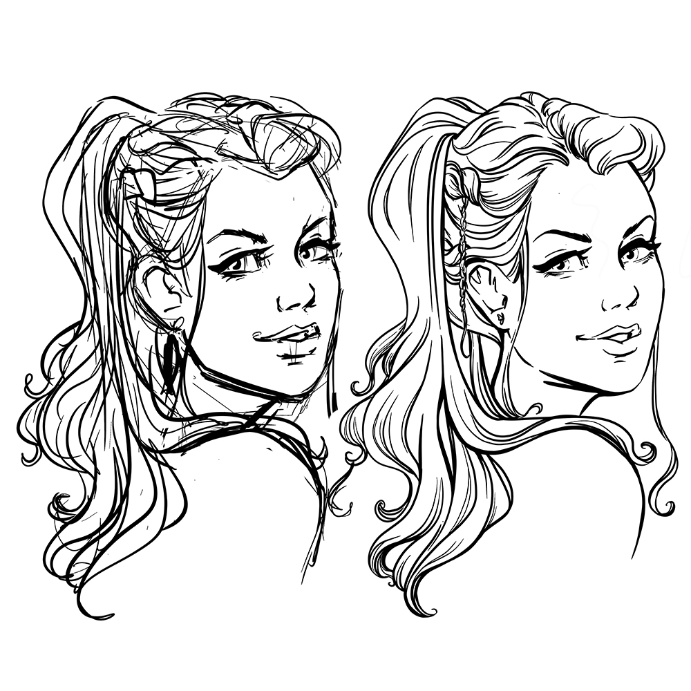 Termina tu ilustración con líneas más gruesas en el lado opuesto a la luz. Puedes detallar los mechones de pelo con trazos más finos según prefieras.