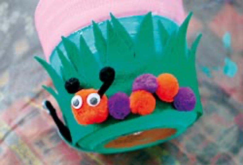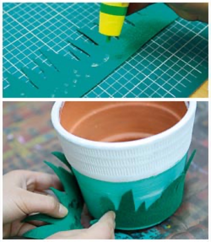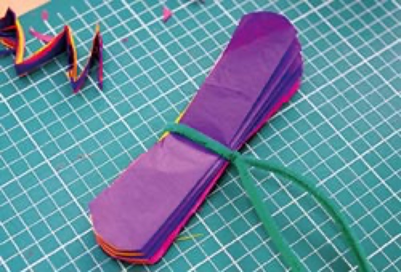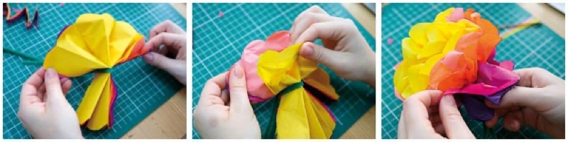 Decoraremos los botes con hilos de chenilla, hojas de espuma y papel de seda de colores.
