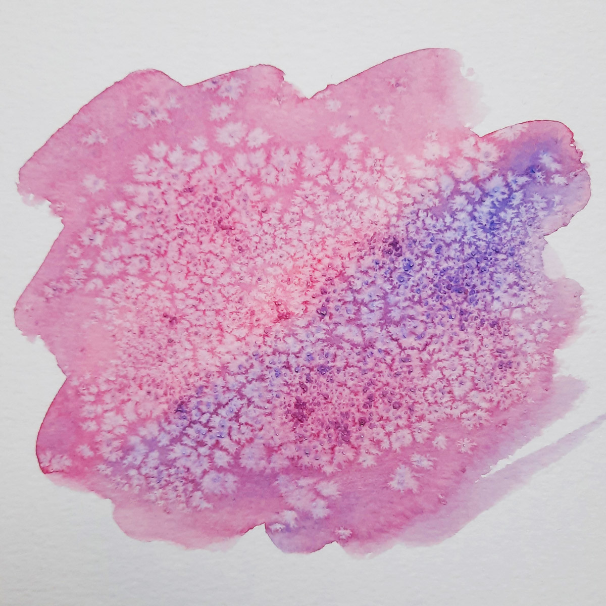 Con un pincel ancho, humedece el papel de acuarela (Canson® Montval® será perfecto para este ejercicio). A continuación, añade el color que quieras. Aquí, azul primario con un poco de ultramar y un toque de carmín.