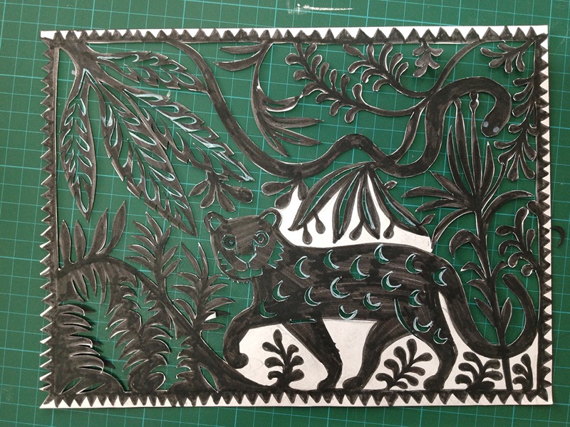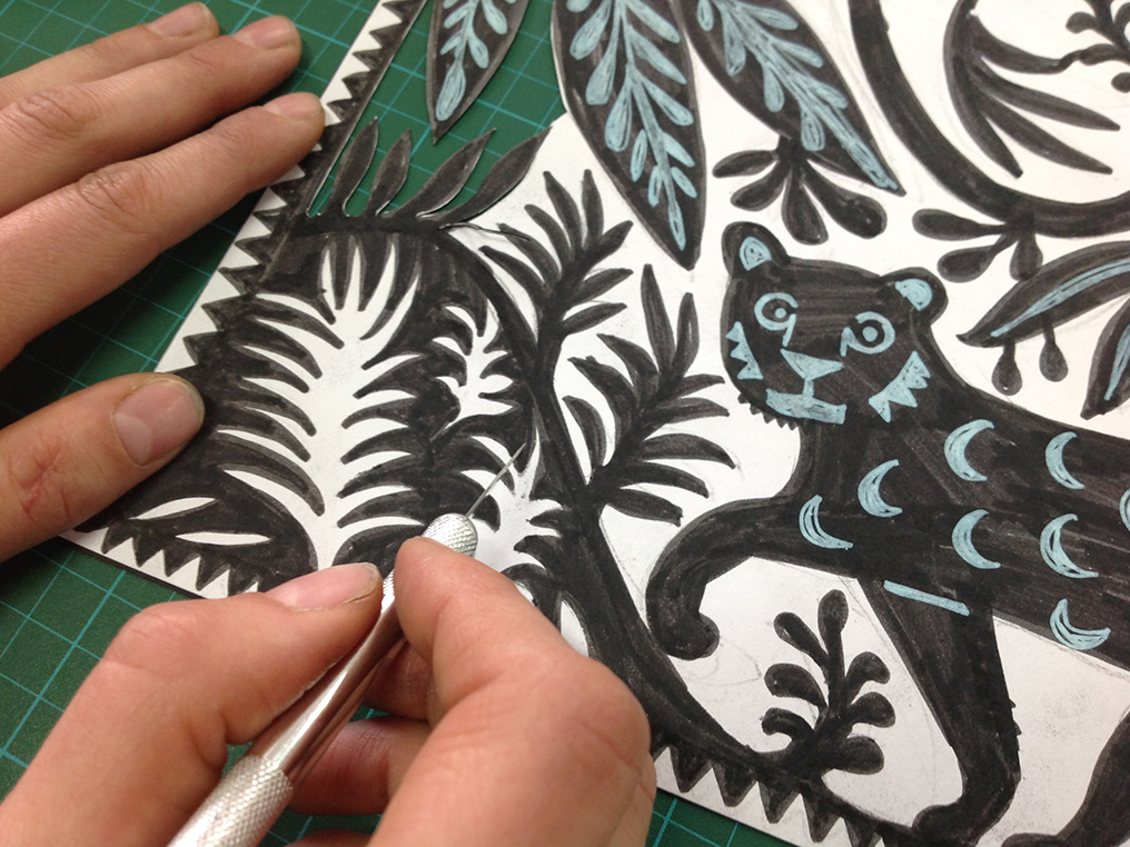Poco a poco, irás eliminado todas las zonas blancas del patrón. Algunas partes de tamaño reducido serán más difíciles de recortar, así que tómate tu tiempo y cambia con frecuencia de cuchilla para realizar cortes bien nítidos.