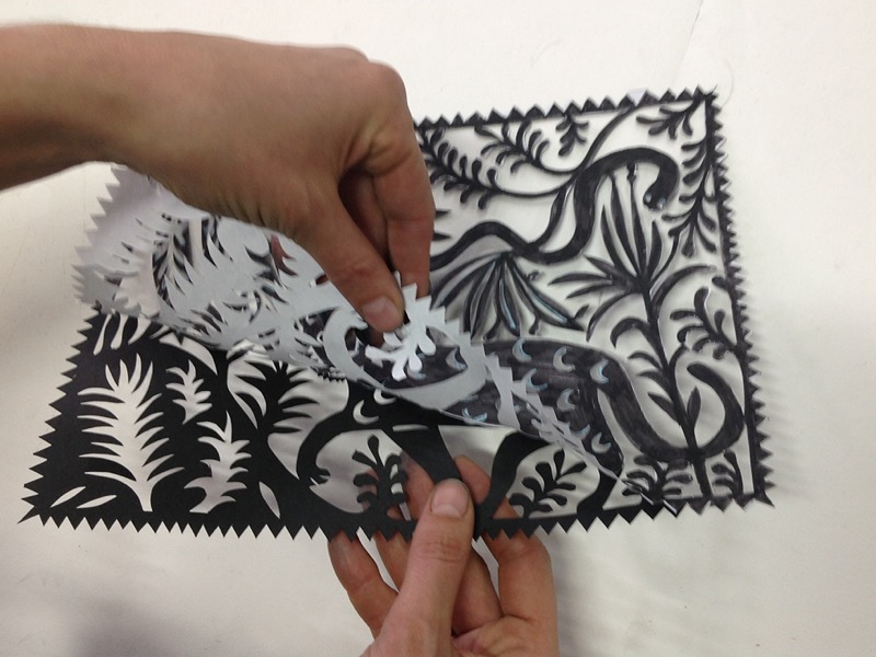 Esta etapa requiere mucho cuidado. Despega el patrón del papel negro. Si quedan pedazos de patrón pegados a la hoja negra, no pasa nada, ya que podrás disimular estas partes pegadas en la etapa siguiente, dándole la vuelta al recorte.