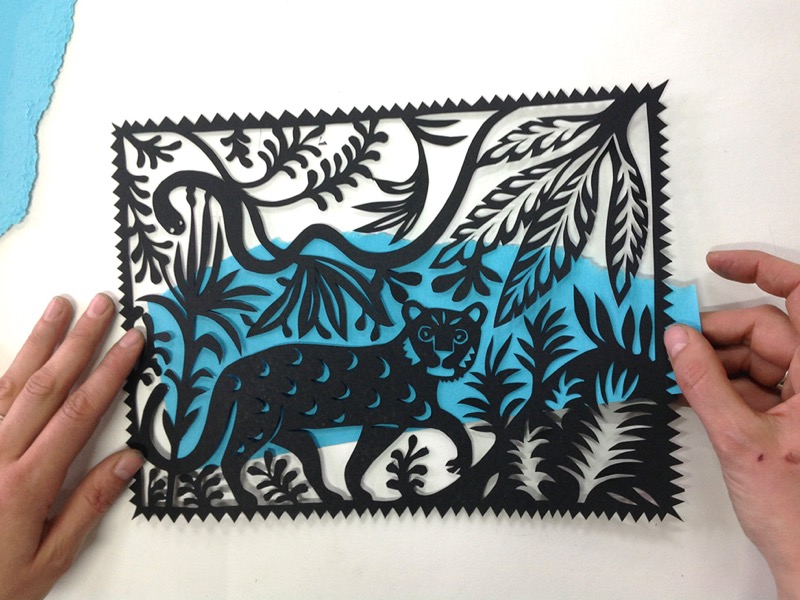 Truco: para resaltar el cuadro recortado, añade algunas gotas de pegamento debajo del papel recortado para crear relieve y que la luz pueda circular entre las dos superficies de papel, creando juegos de sombras.