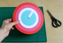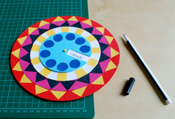Este mandala está ensamblado con un sujetador de papel que le permite tener un círculo giratorio en el centro, y, por lo tanto, escribir mensajes. ¡Se puede usar como un semanario, por ejemplo!
