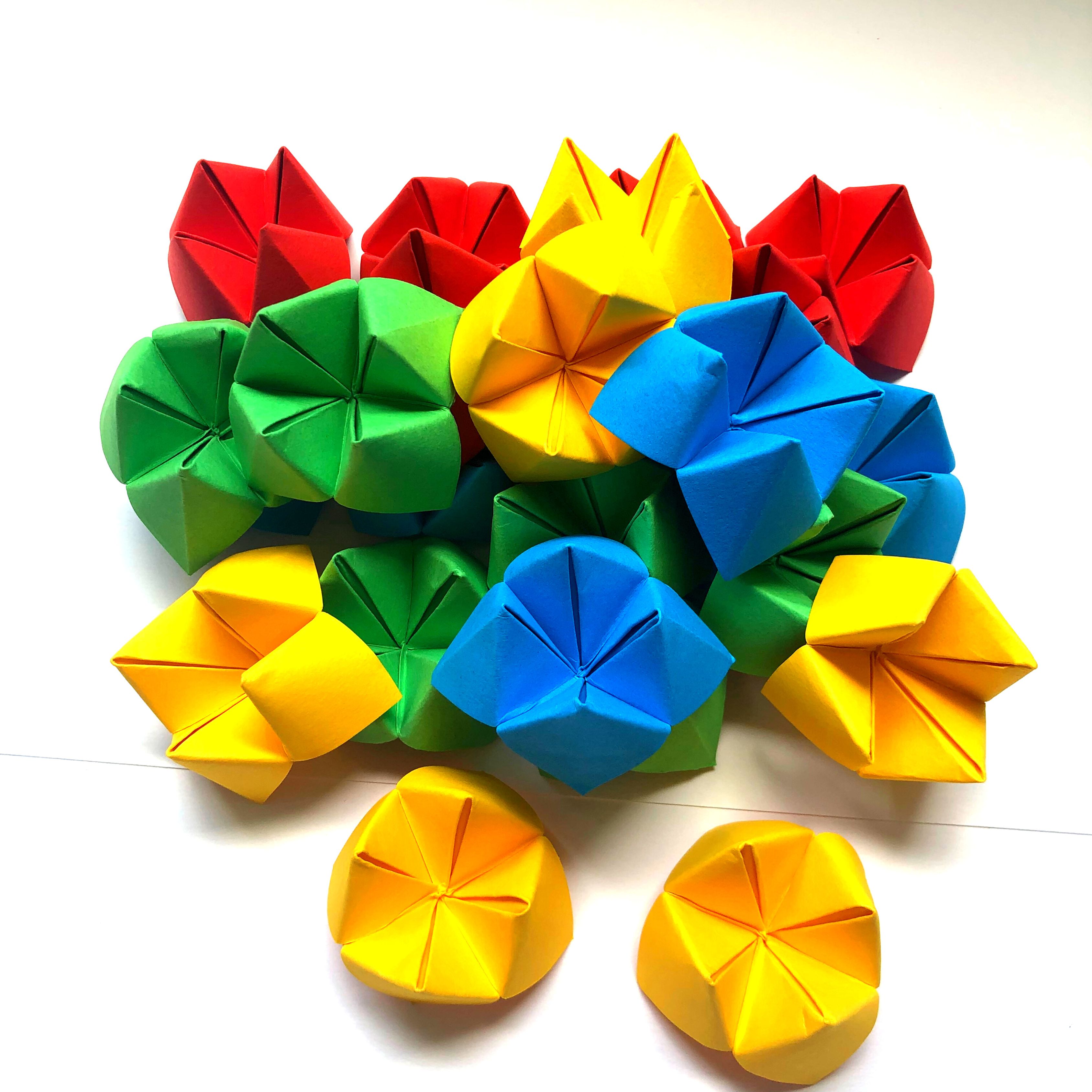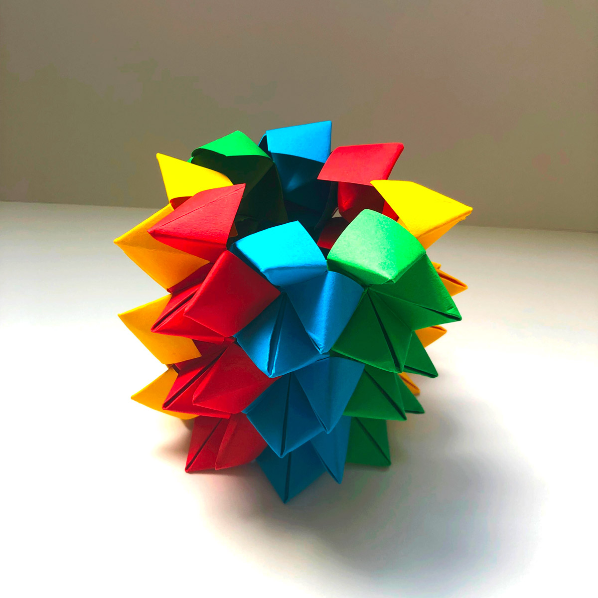 Esta técnica, conocida como origami modular o 3D, consiste en plegar repetidamente varios cuadrados de papel del mismo tamaño llamados «módulos». Esto permite crear objetos tridimensionales de distintos tamaños y colores.