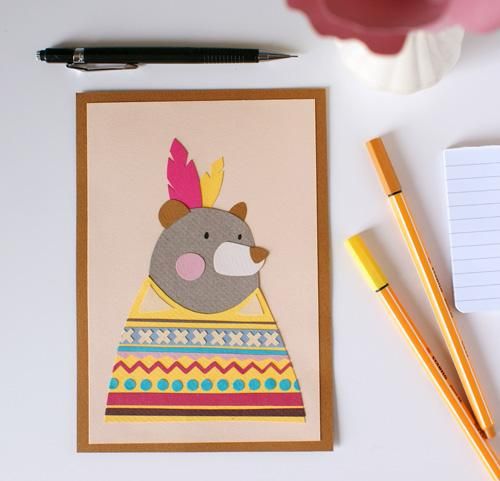 Realice un retrato de un oso de colores totalmente en papel. ¡Resultará ideal para decorar un dormitorio infantil o utilizarse como postal!