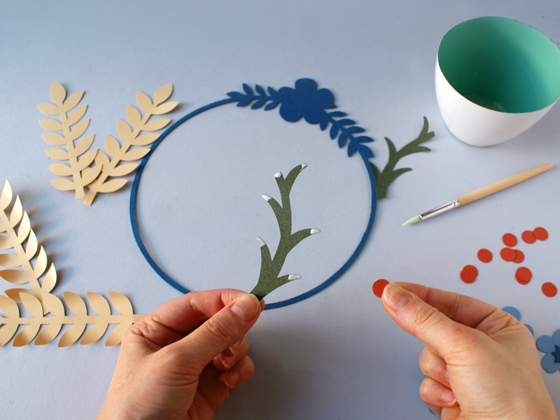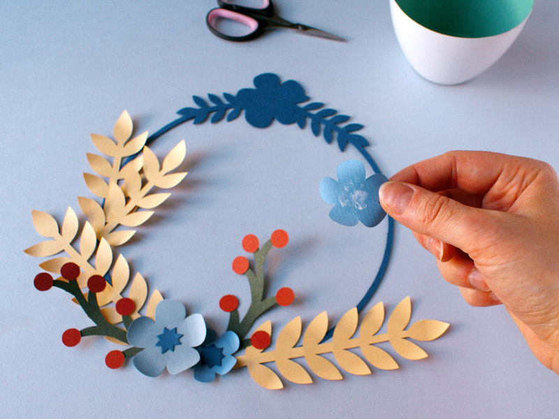 Realice un círculo decorado con flores de papel. Será ideal para decorar una de sus paredes y creará una impresión retro y vegetal a la vez.