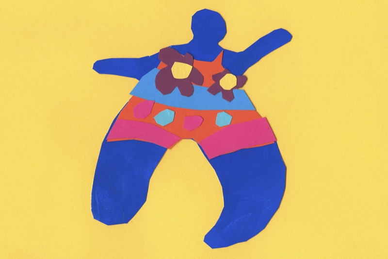Distribuye entre tus alumnos grandes hojas de papel blanco (o bien un rollo de papel de 50 cm de ancho). Haz circular por la clase unas cuantas fotos de las esculturas de Niki de Saint Phalle. Propón a los estudiantes que creen su propia «Nana» dibujando con lápiz en un papel la silueta de una gran «Nana». A continuación, invítalos a pintar el interior de su «Nana» con un único color, como por ejemplo un bonito azul real.