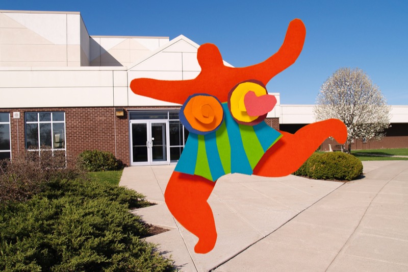 A continuación, pídeles que instalen su escultura pegándola con cola a la fotografía del patio del colegio.