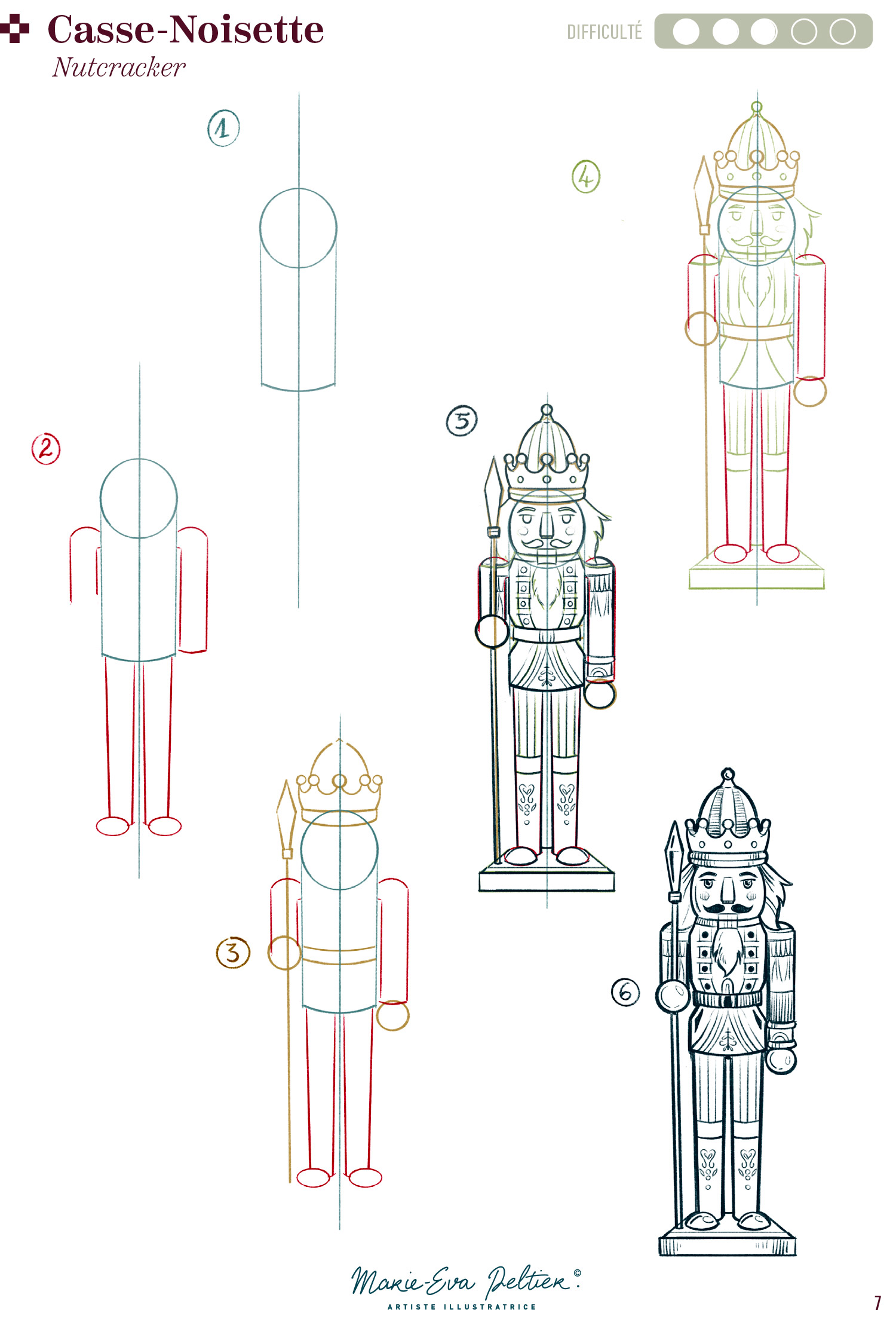 Hoy en día, el cascanueces se ha convertido en un auténtico icono gráfico. Dibujarlo es reconectar con una tradición antigua y, al mismo tiempo, apropiarse de sus códigos visuales. También es una excelente oportunidad para trabajar la simetría, las proporciones y el detalle, con un toque de nostalgia y mucho placer. Y no te preocupes, este solo romperá lápices.