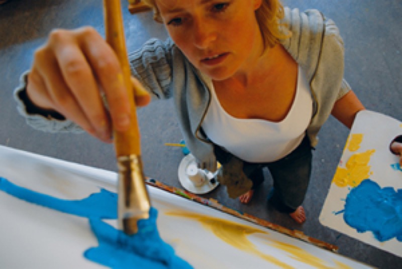 Empieza pintando el fondo de la tela: puedes jugar con las texturas. Deja secar.