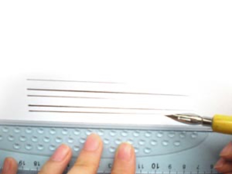 Traza una raya con la regla: al principio, ejerce una presión normal con el bolígrafo, y luego ve reduciendo la presión a medio camino para aligerar el trazo. Para terminar, levanta el bolígrafo del papel progresivamente (como un avión que despega).