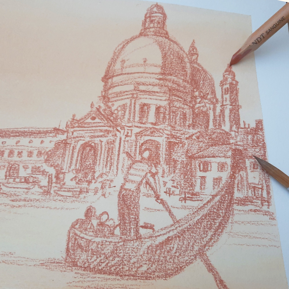 En este ejemplo se ha elegido una vista de Venecia. El encanto del dibujo reside en dos factores: el fondo y el resultado gráfico.