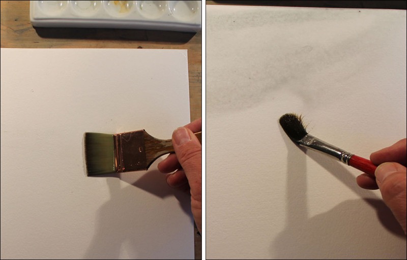 - Lápices y pinceles: Princeton pinceles finos (un espalter ancho, un pincel "lengua de gato", un pincel de lavis, uno o dos pinceles de punta fina de marta) y un lápiz de punta fina H o HB.