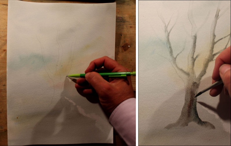 Realización de un ejercicio típico del uso de la acuarela, con muy poco material y jugando con el agua.