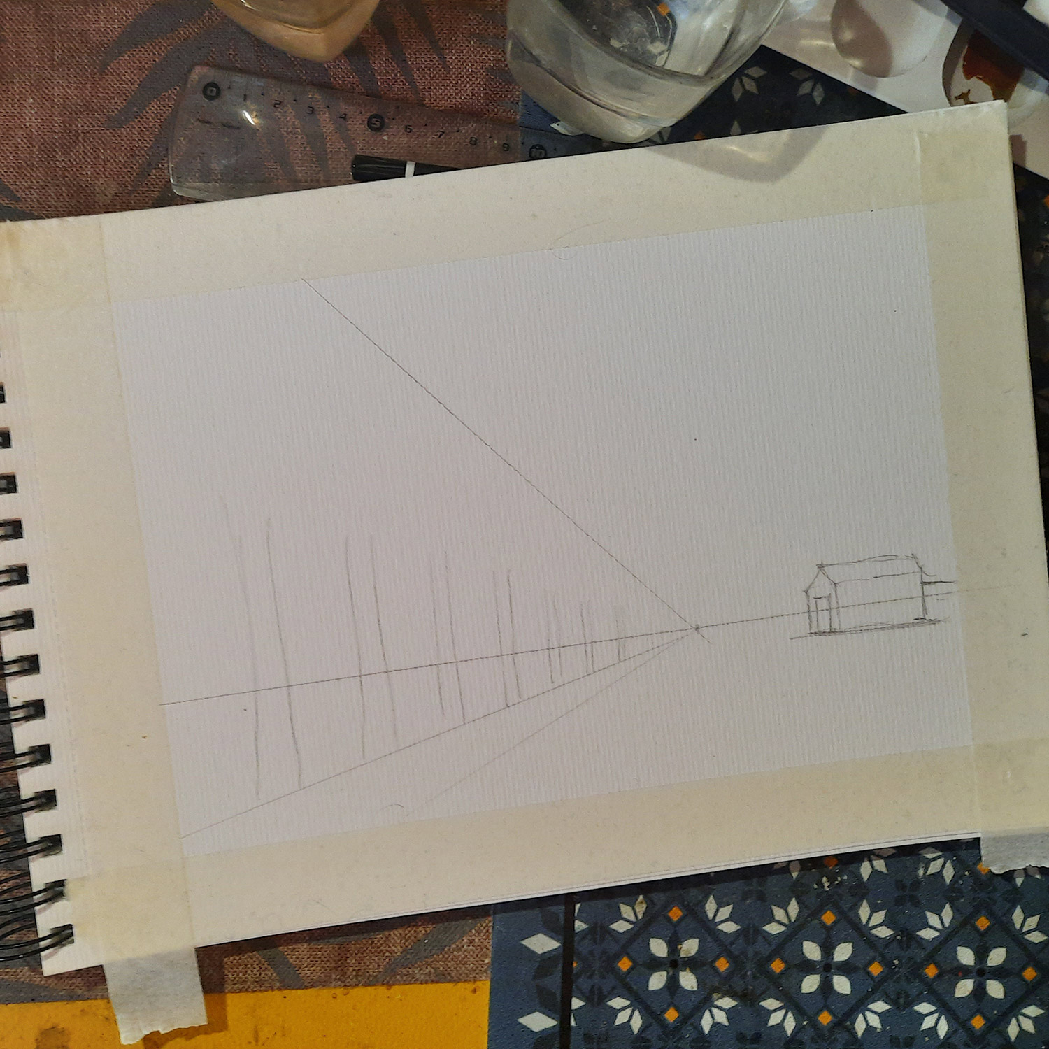 - Accesorios: 2 recipientes de agua, goma de borrar, regla, cinta adhesiva reposicionable, paño.