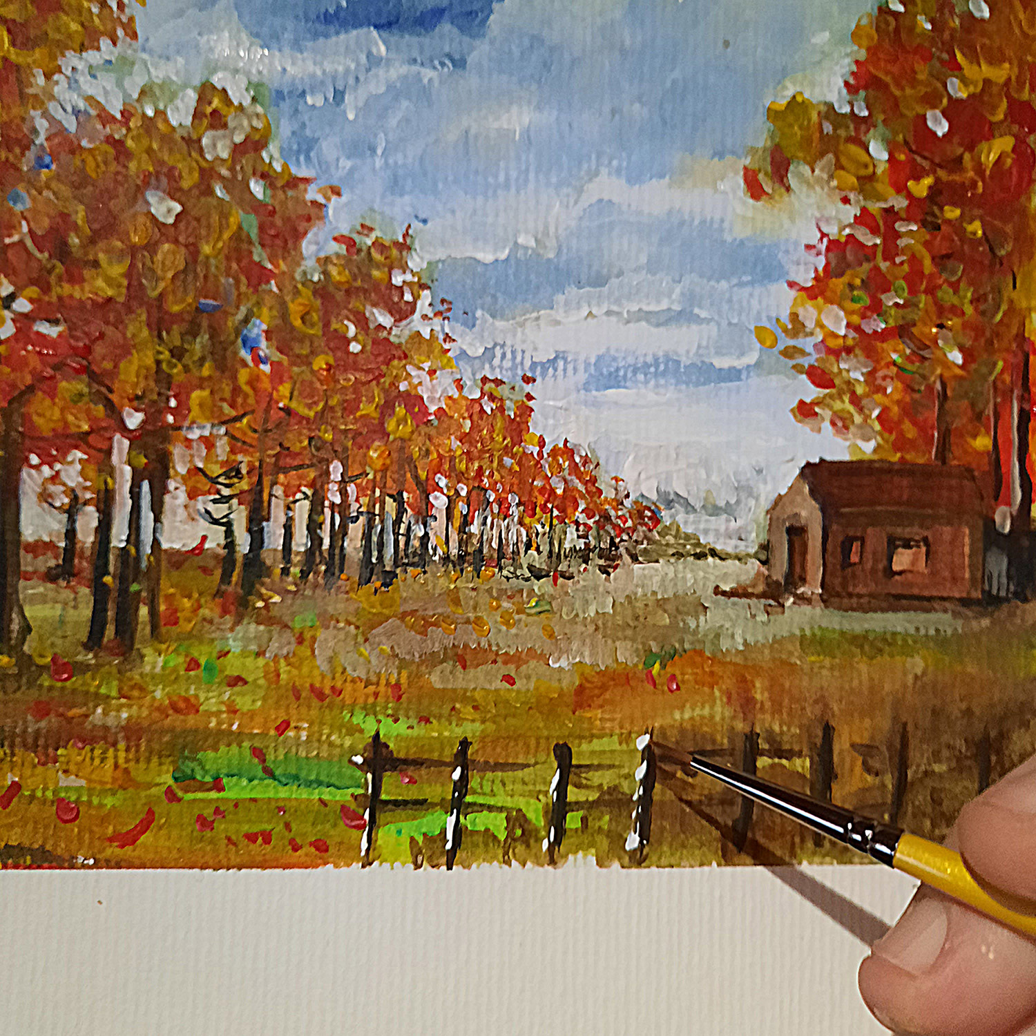 Este paisaje de colores vivos, realizado en 8 pasos, sienta las bases de una buena construcción del color y de una progresión sencilla y eficaz conocida como "graso sobre magro".