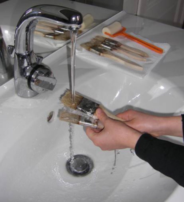 Aunque es posible acabar con los residuos intempestivos, es mejor limpiar las paletas, plumas y pinceles antes de que se sequen. El método depende del medio empleado.