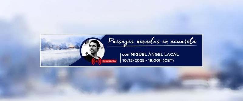 👉 Apúntate al taller en directo "Paisajes nevados en acuarela" el próximo 10 de diciembre a las 19:00h (CET) con el artista multidisciplinario Miguel Ángel Lacal (@artlacal).